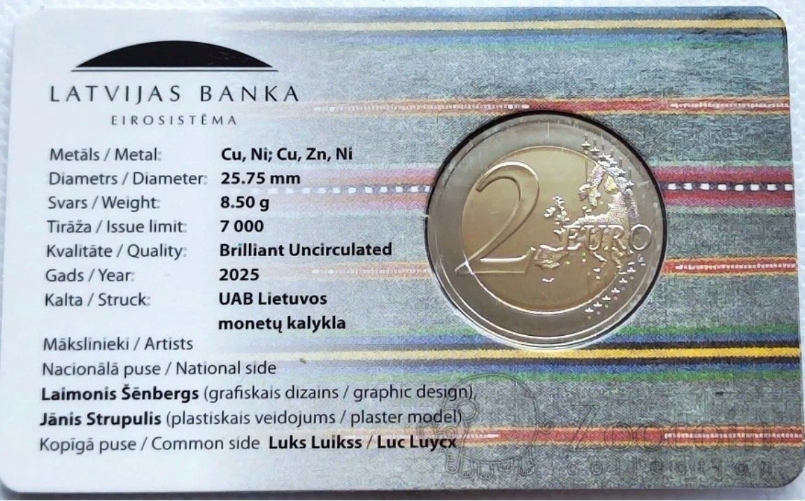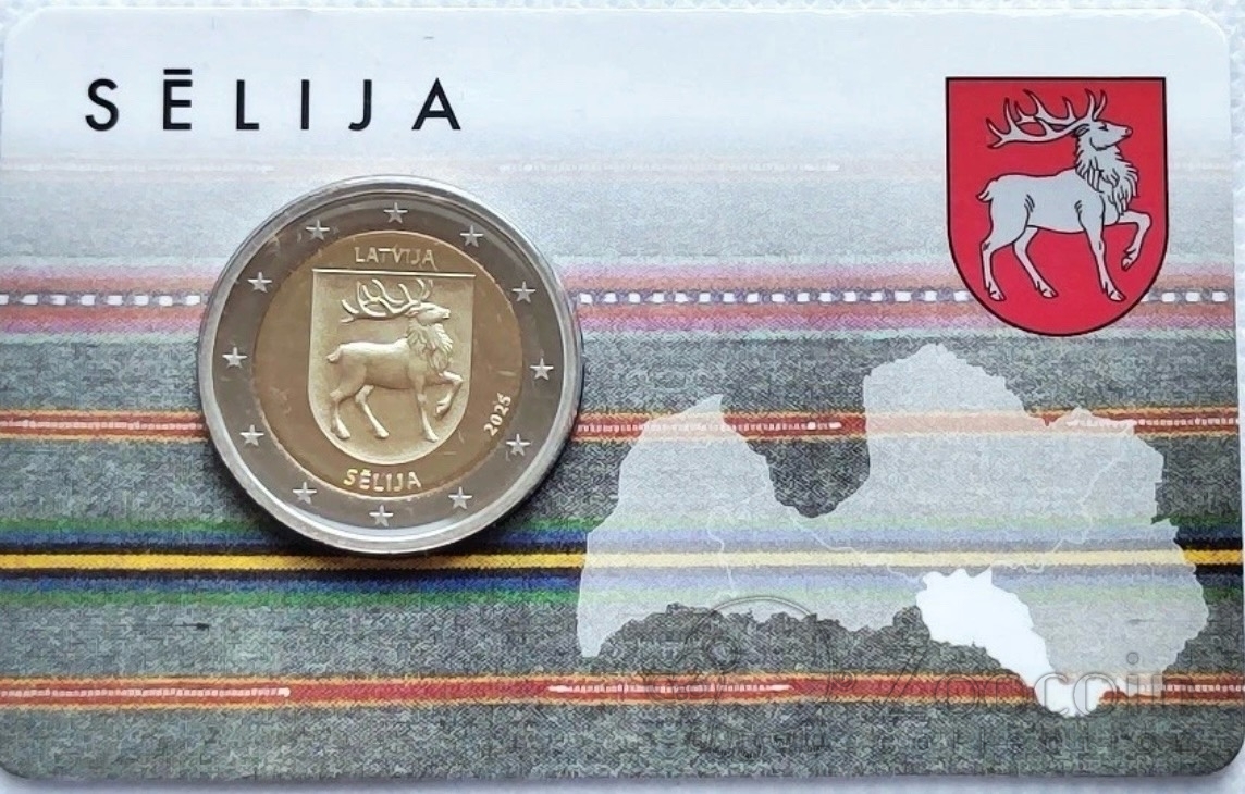 Латвия 2 евро 2025 Исторические области Латвии - Селия (карта, BU)