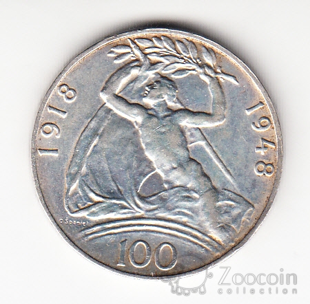 Чехословакия 100 крон 1948 30 лет Независимости [2]