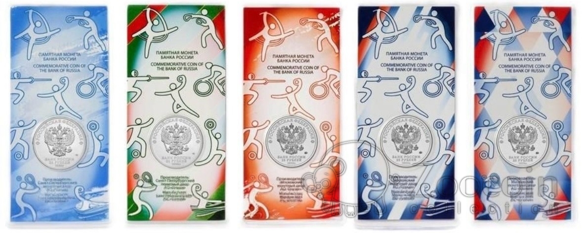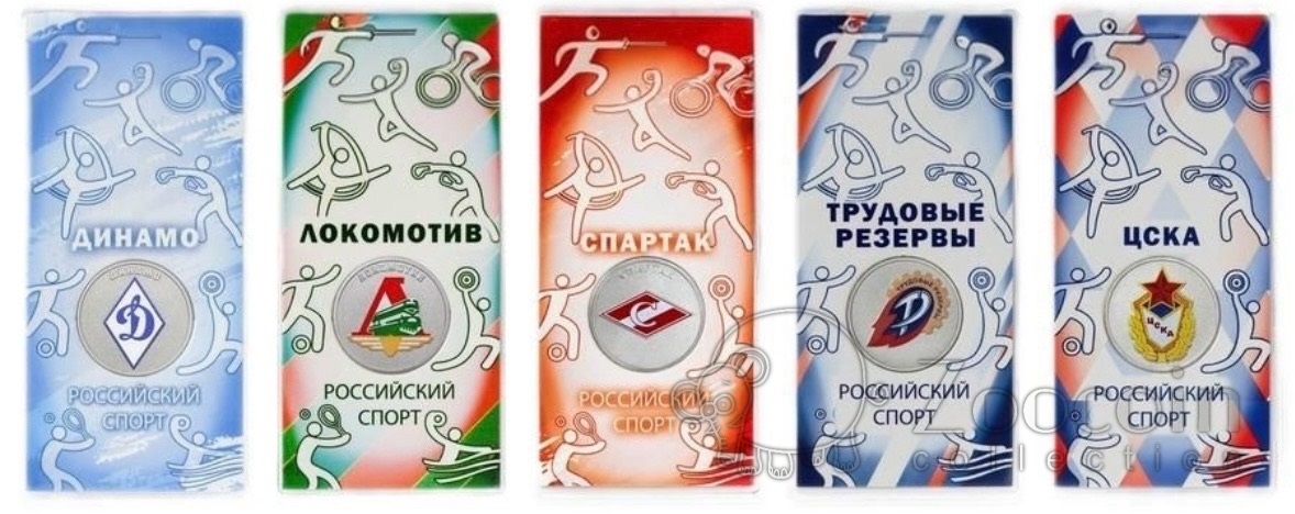 Россия набор 5 монет 2025 25 рублей Российский спорт - футбольные клубы (Локомотив, Динамо, Спартак, Трудовые Резервы, ЦСКА)