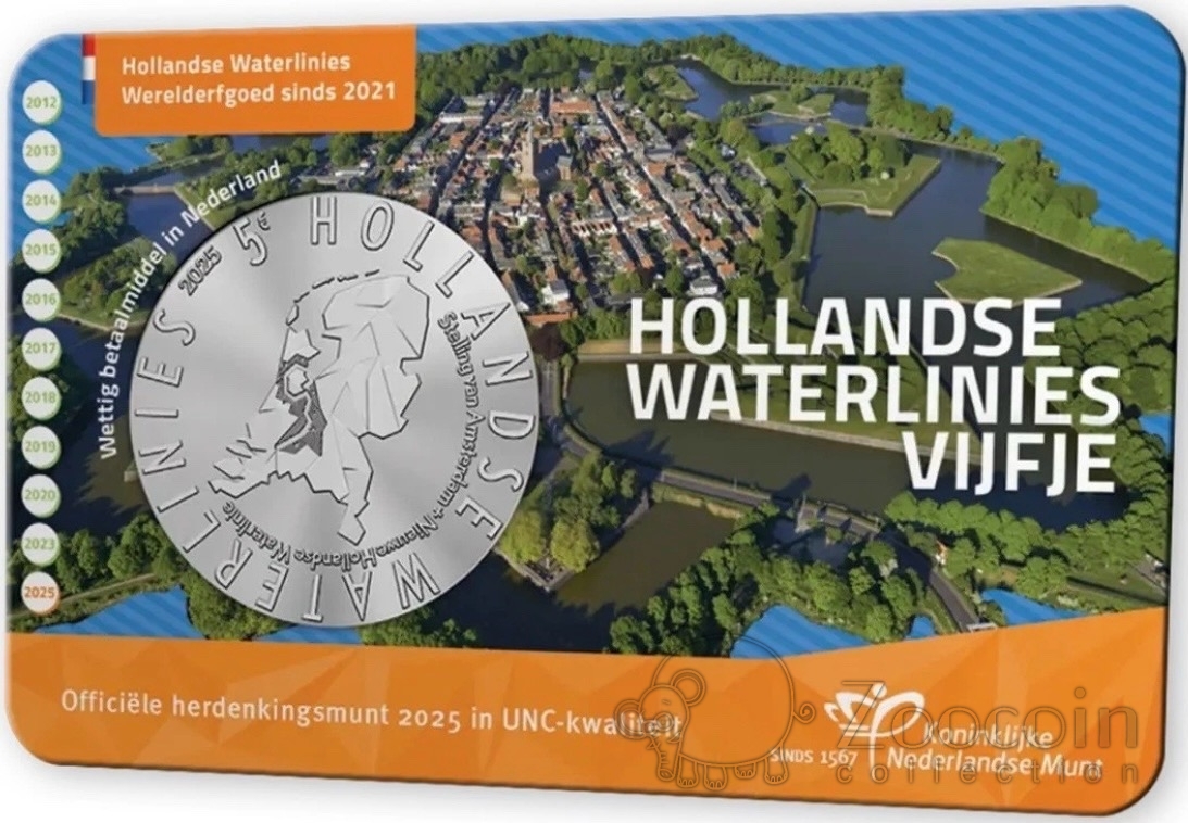 Нидерланды 5 евро 2025 Голландские линии водозащиты (карта)