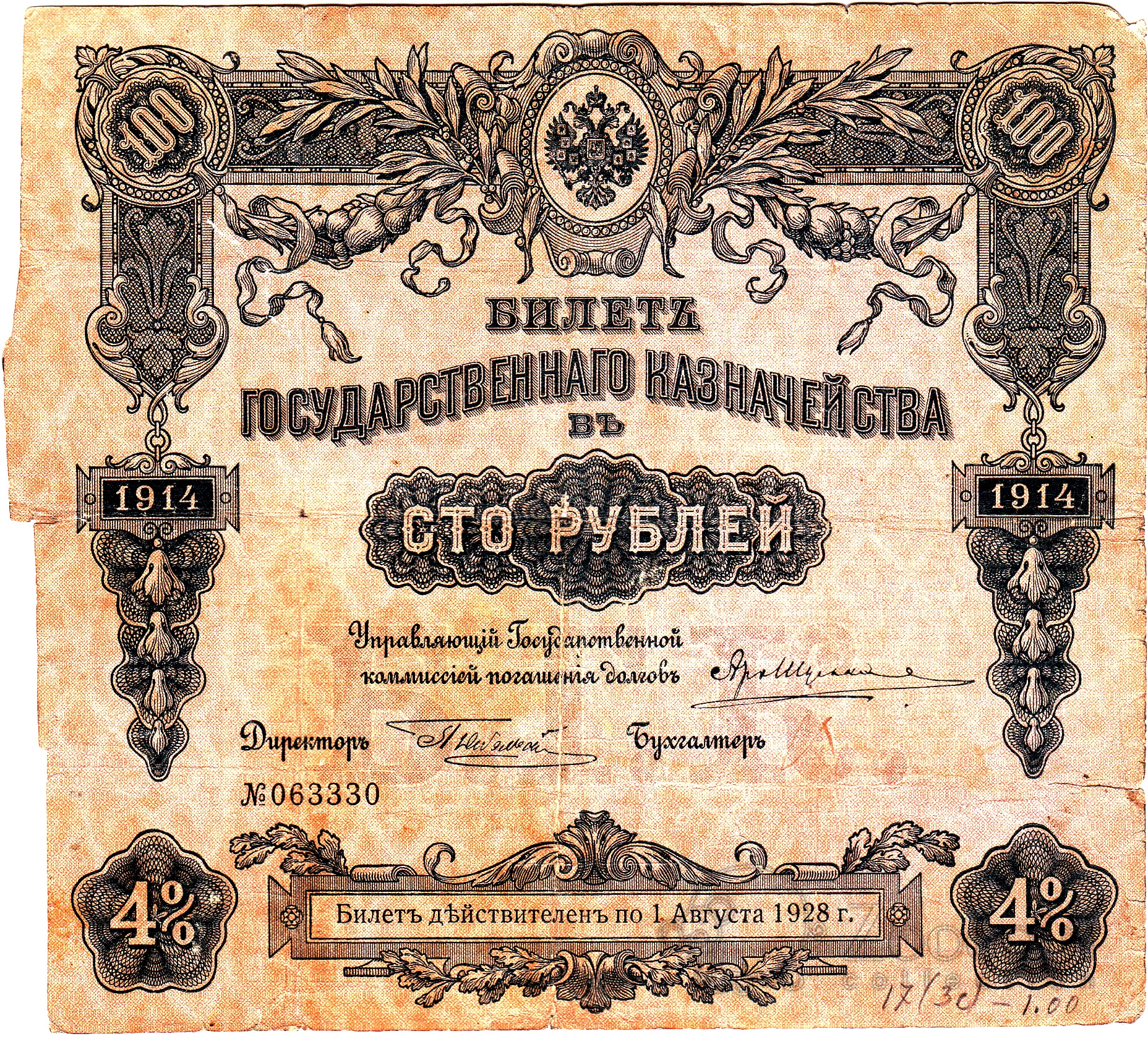 Россия 100 рублей 1914 Билет Государственного Казначейства