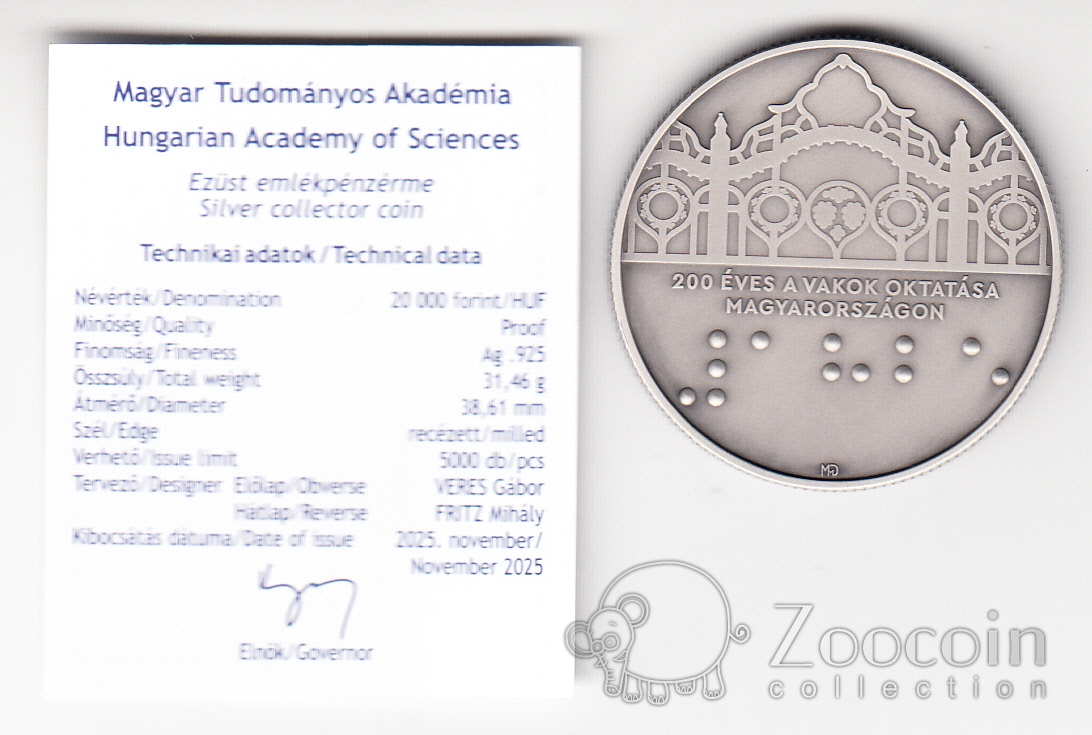 Венгрия 20000 форинтов 2025 200 лет образование для слепых в Венгрии