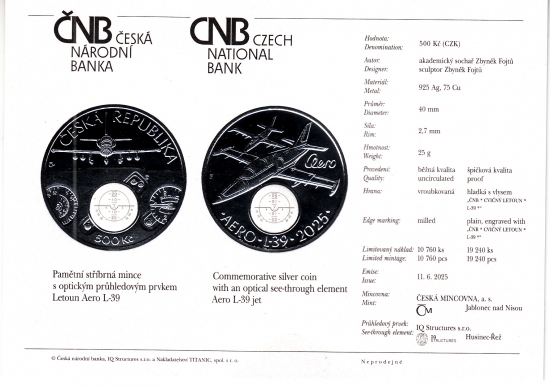 Чехия 500 крон 2025 Самолет - AERO L-39 Альбатрос