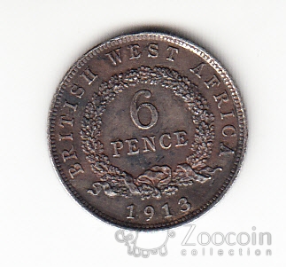 Брит. Западная Африка 6 пенсов 1913 Брит. Западная Африка 6 пенсов 1913