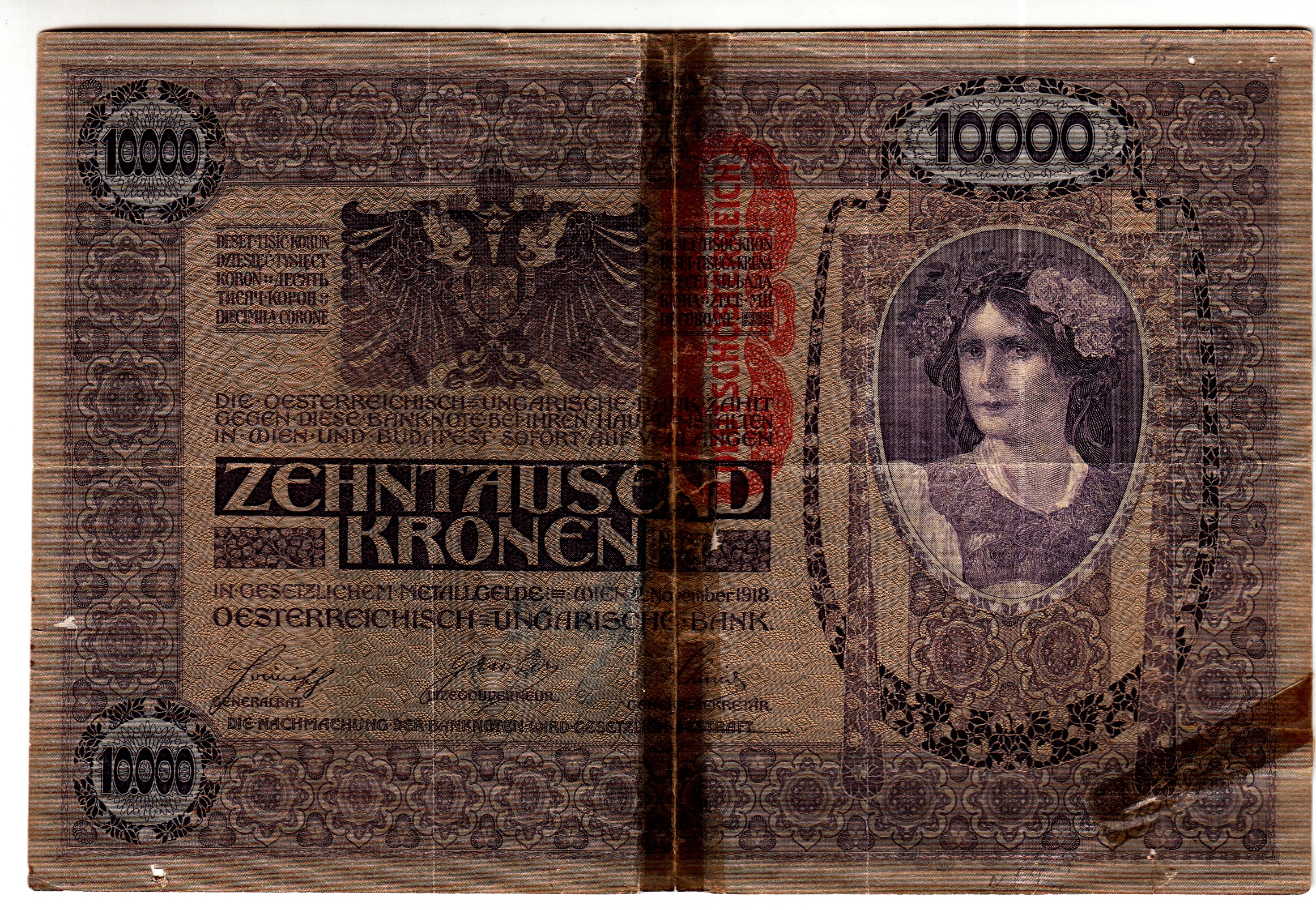 Австрия 10000 корон 1918 Надпечатка Австрия 10000 корон 1918 Надпечатка