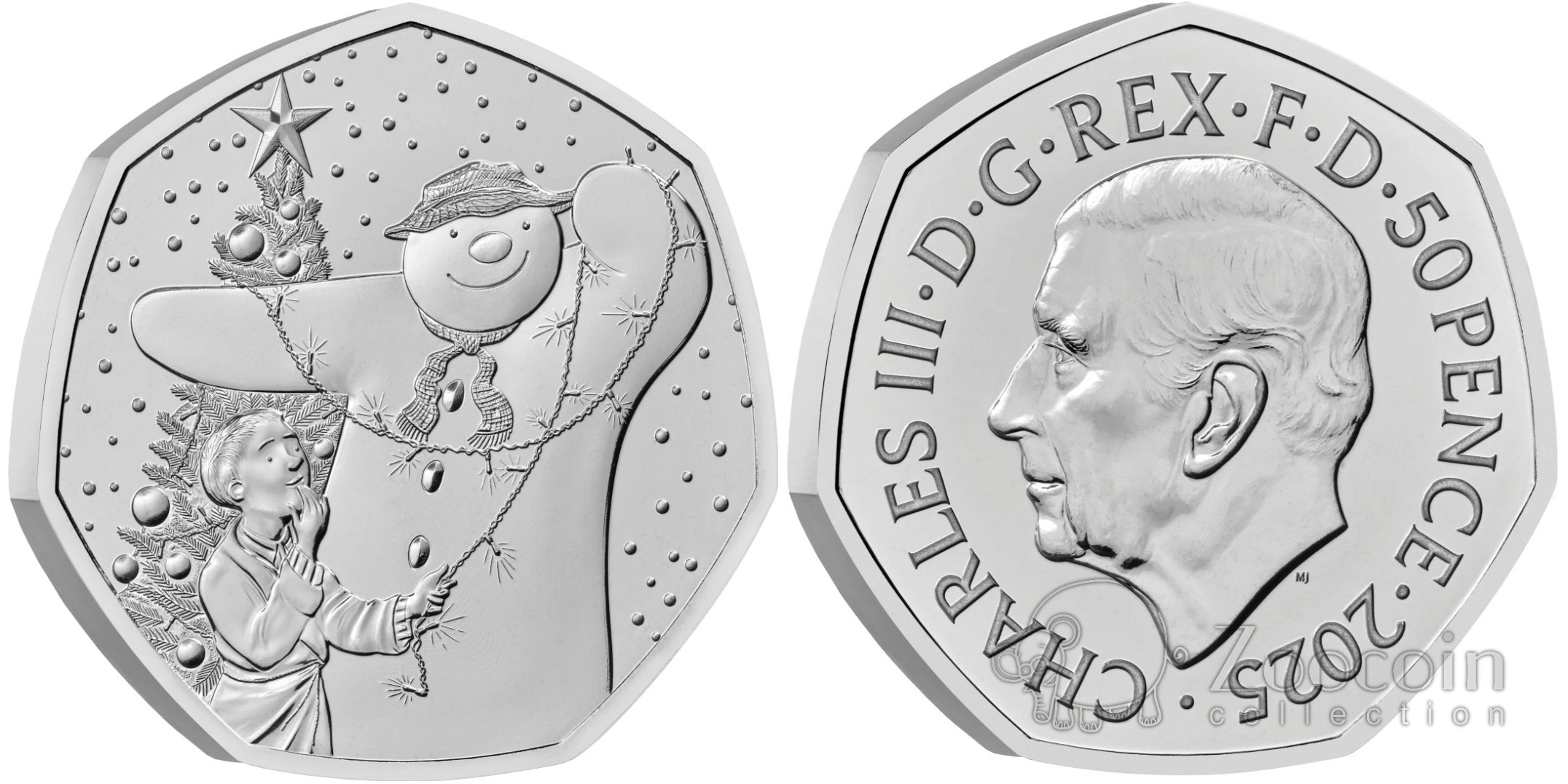 Великобритания 50 пенсов 2025 Рождество - Снеговик (блистер)