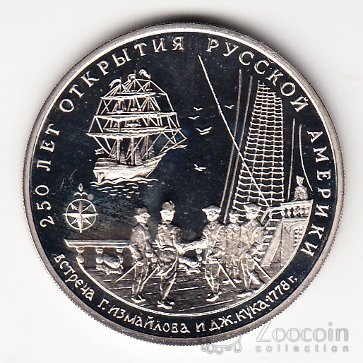 Россия жетон ММД 250-лет Открытия Русской Америки - Встреча Г. Измайлова и Дж. Кука 1778
