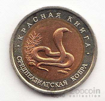 Россия 10 рублей 1992 Среднеазиатская кобра