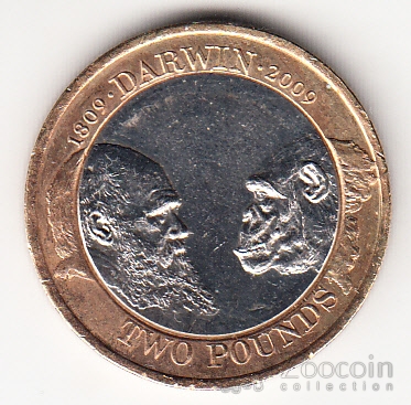 Великобритания 2 фунта 2009 Чарльз Дарвин Великобритания 2 фунта 2009 Чарльз Дарвин