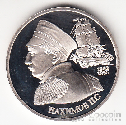 Россия 1 рубль 1992 П. Нахимов (proof)