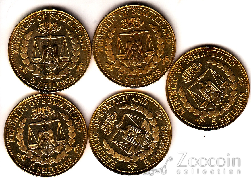 Сомалиленд 5 монет 5 шиллингов 2016 Дикие кошки