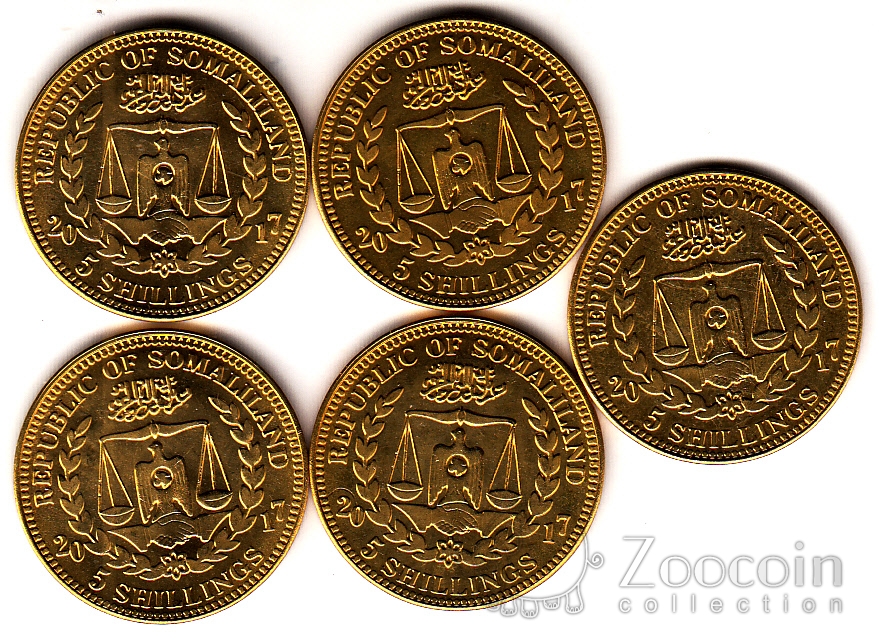 Сомалиленд 5 монет 5 шиллингов 2017 Обезьяны