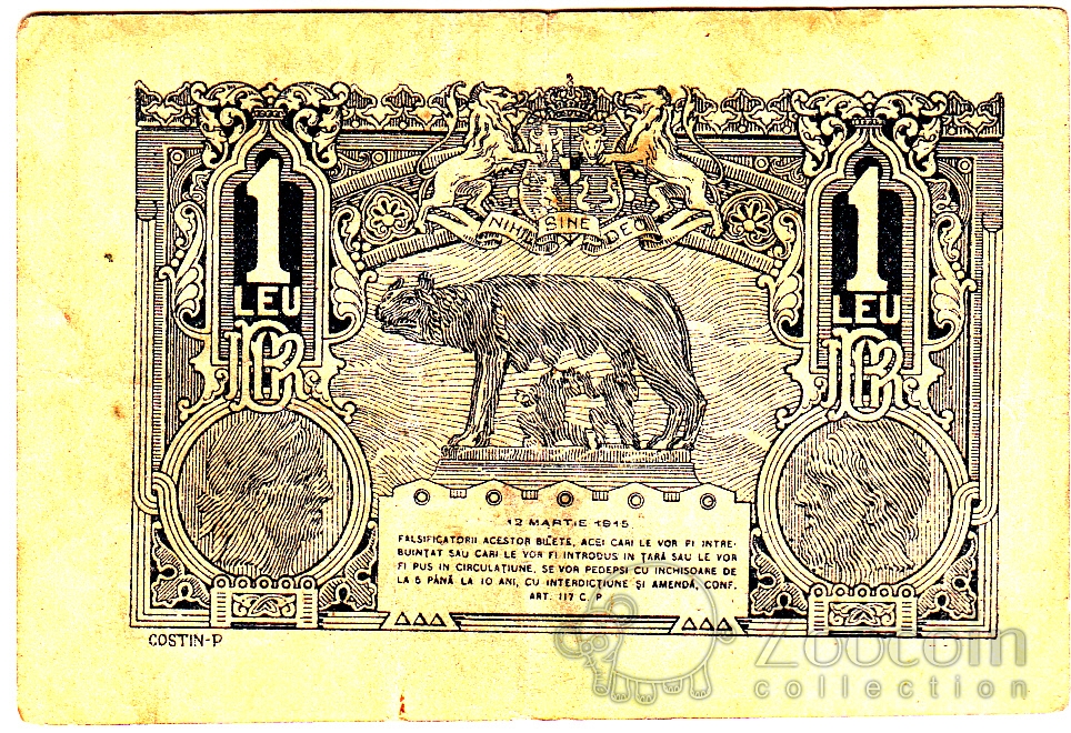 Румыния 1 лей 1915 Румыния 1 лей 1915