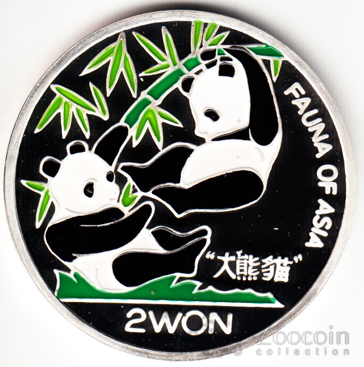 КНДР 2 воны 2000. Панды, эмаль. Состояние: см. скан