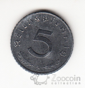 Германия 5 пфеннигов 1940 A (тип 2) Германия 5 пфеннигов 1940 A (тип 2)