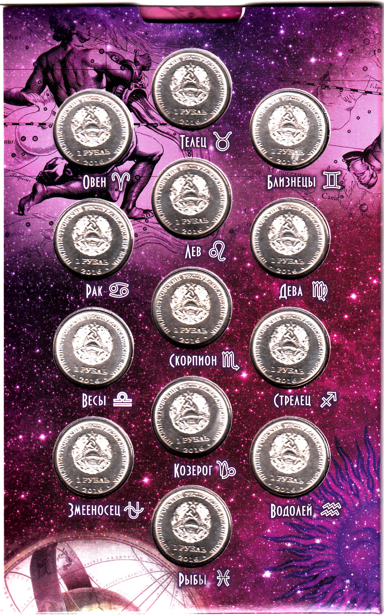 ПМР набор 13 монет 2016 Знаки Зодиака (блистер тип 2) ПМР набор 13 монет 2016 Знаки Зодиака (блистер тип 2)