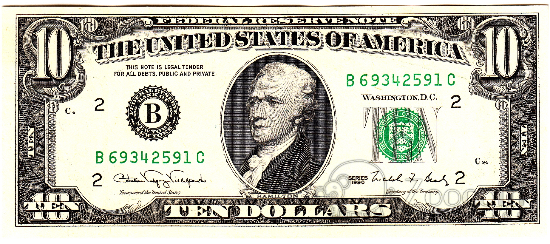США 10 долларов 1990