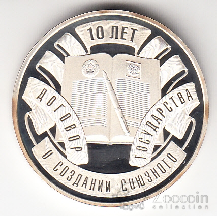 Беларусь 10 рублей 2009 10 лет Договору о Союзном государстве (коробка)