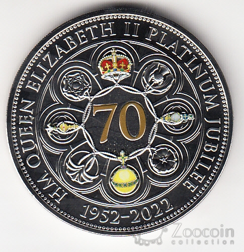 Гернси 5 фунтов 2022 70 лет правлению Королевы Елизаветы II (цветная)