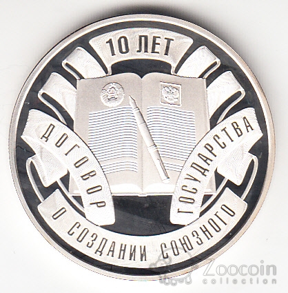 Беларусь 10 рублей 2009 10 лет Договору о Союзном государстве