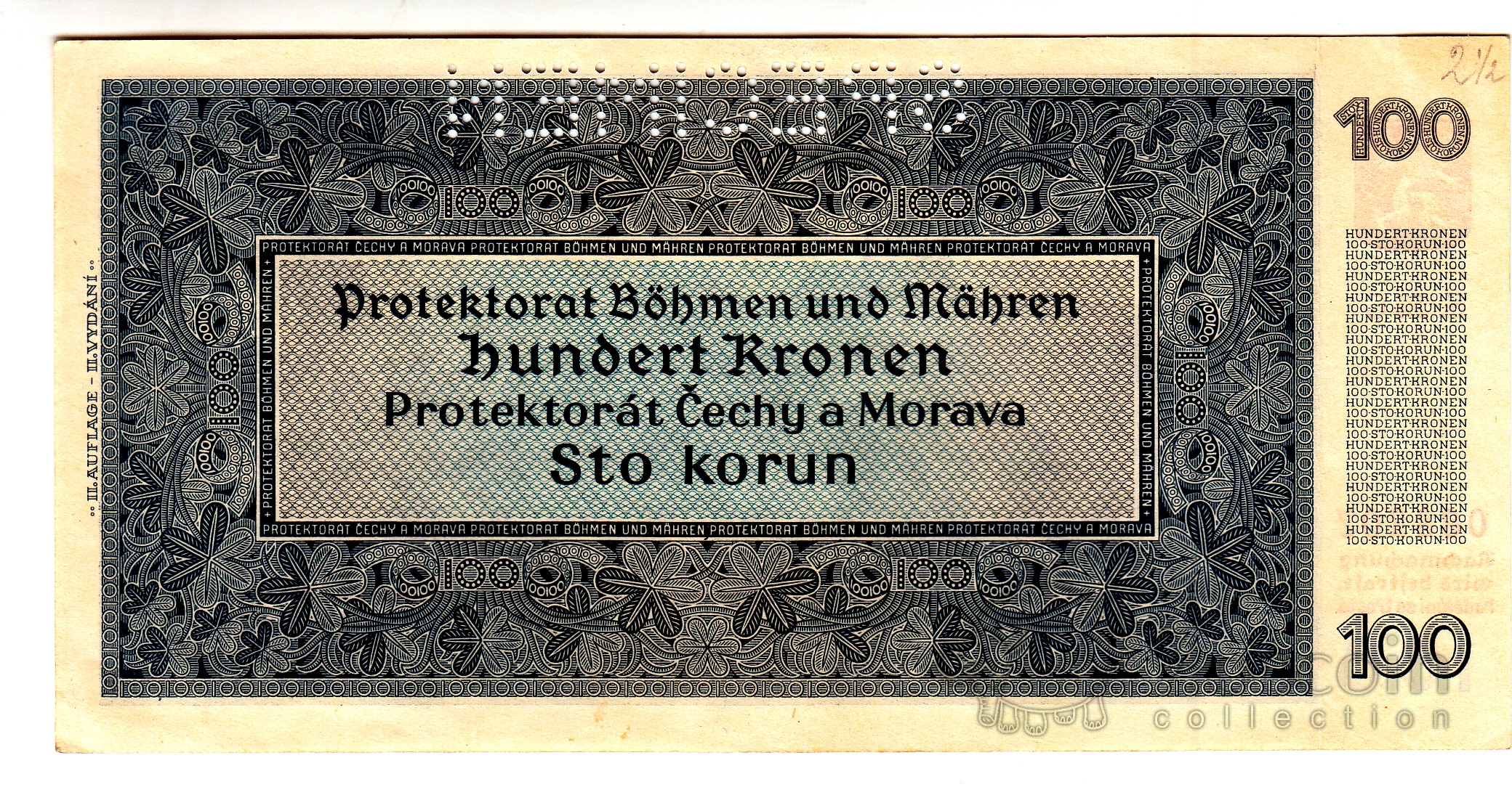 Чехия - Богемия и Моравия 100 крон 1940 Образец