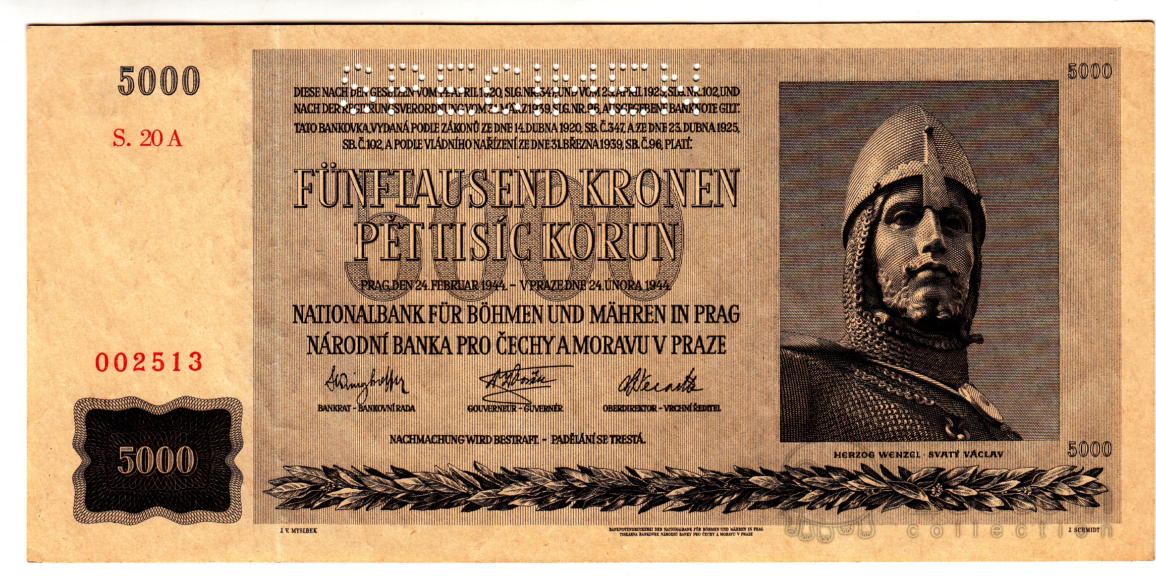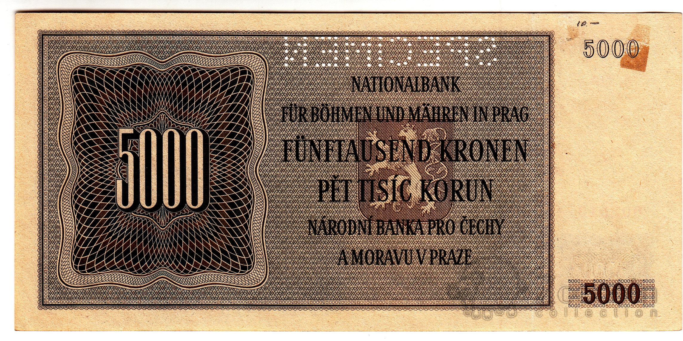 Чехия - Богемия и Моравия 5000 крон 1944 Образец