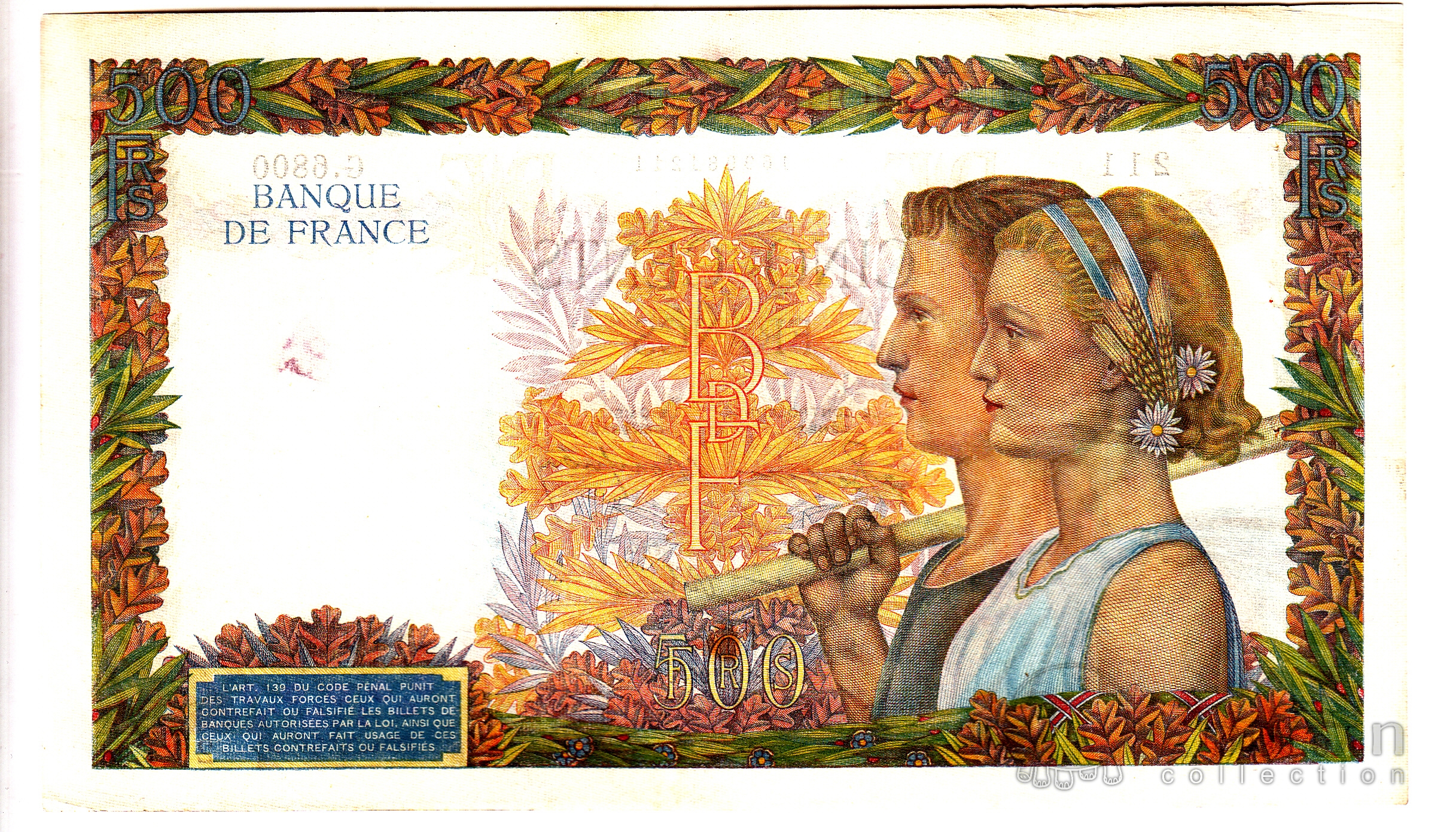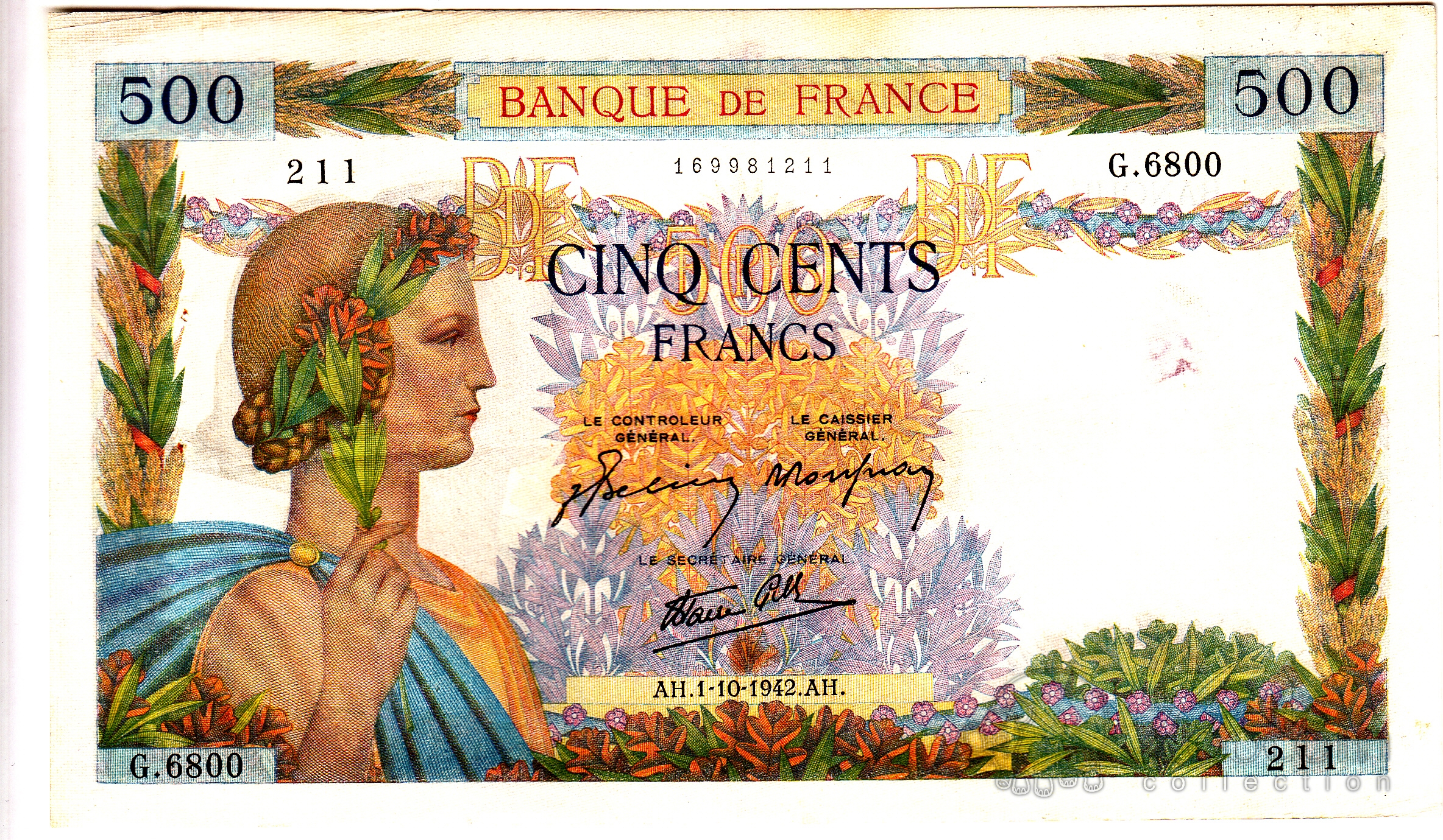 Франция 500 франков 1942 (211 G 6800) Франция 500 франков 1942 (211 G 6800)