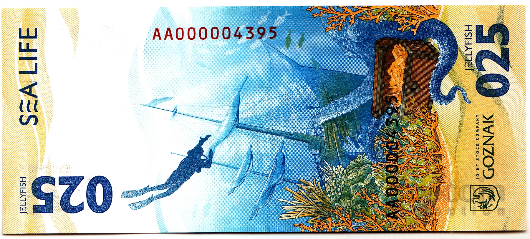 Россия 025 медуз 2025 Тестовая банкота Гознака Морская жизнь