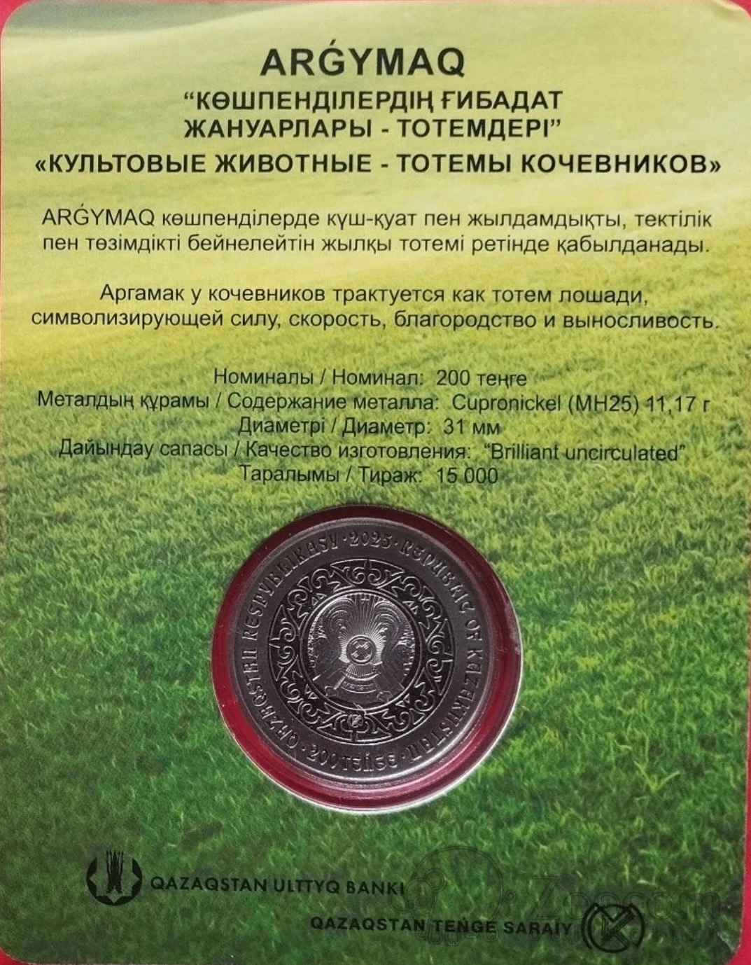 Казахстан 200 тенге 2025 Тотемное животное - лошадь Аргамак (блистер)