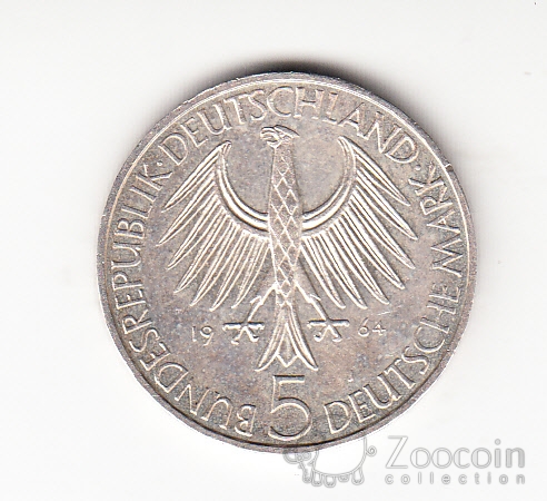 ФРГ 5 марок 1964 150 лет со дня смерти Иоганна Готлиба Фихте