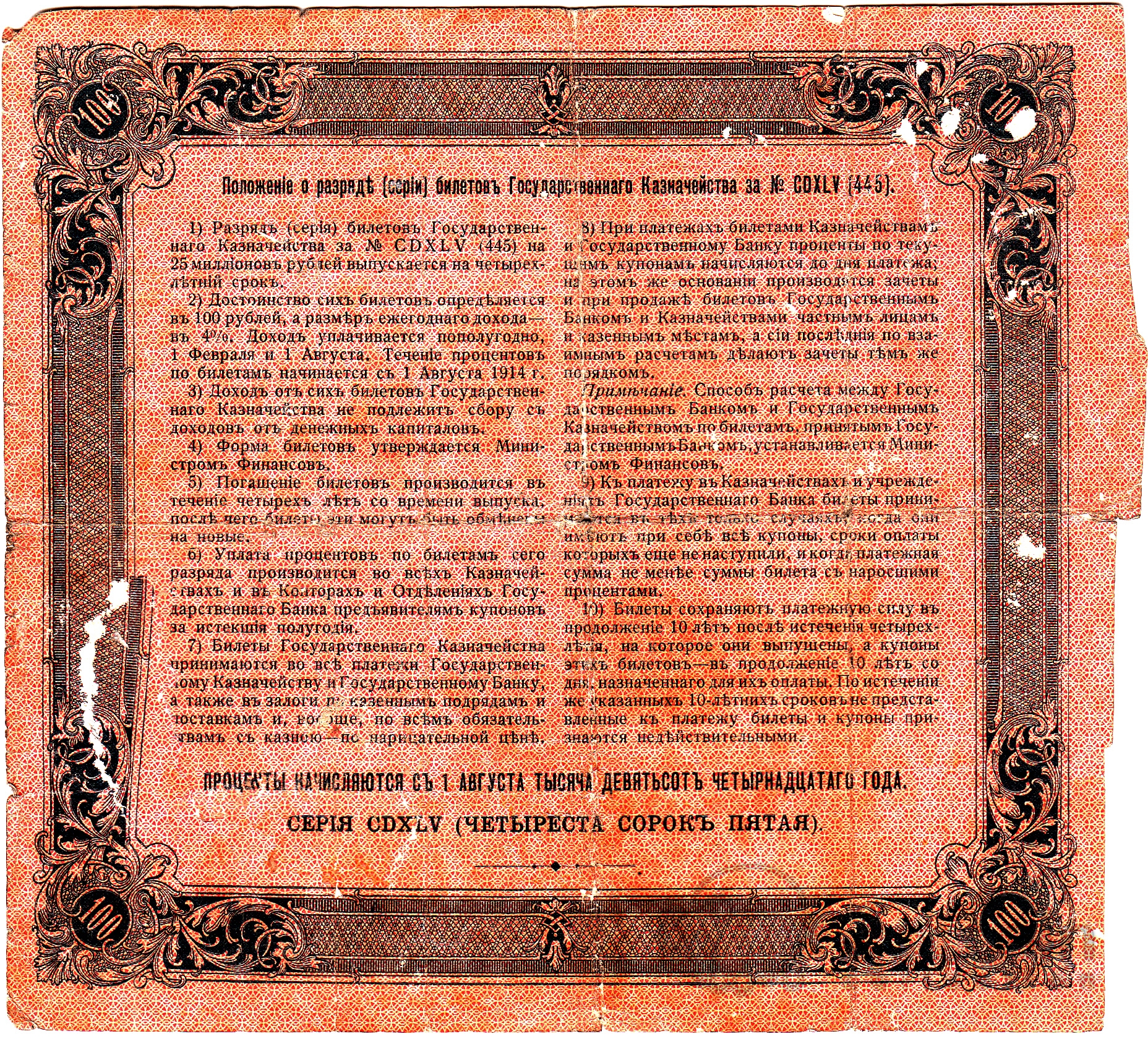 Россия 100 рублей 1914 Билет Государственного Казначейства