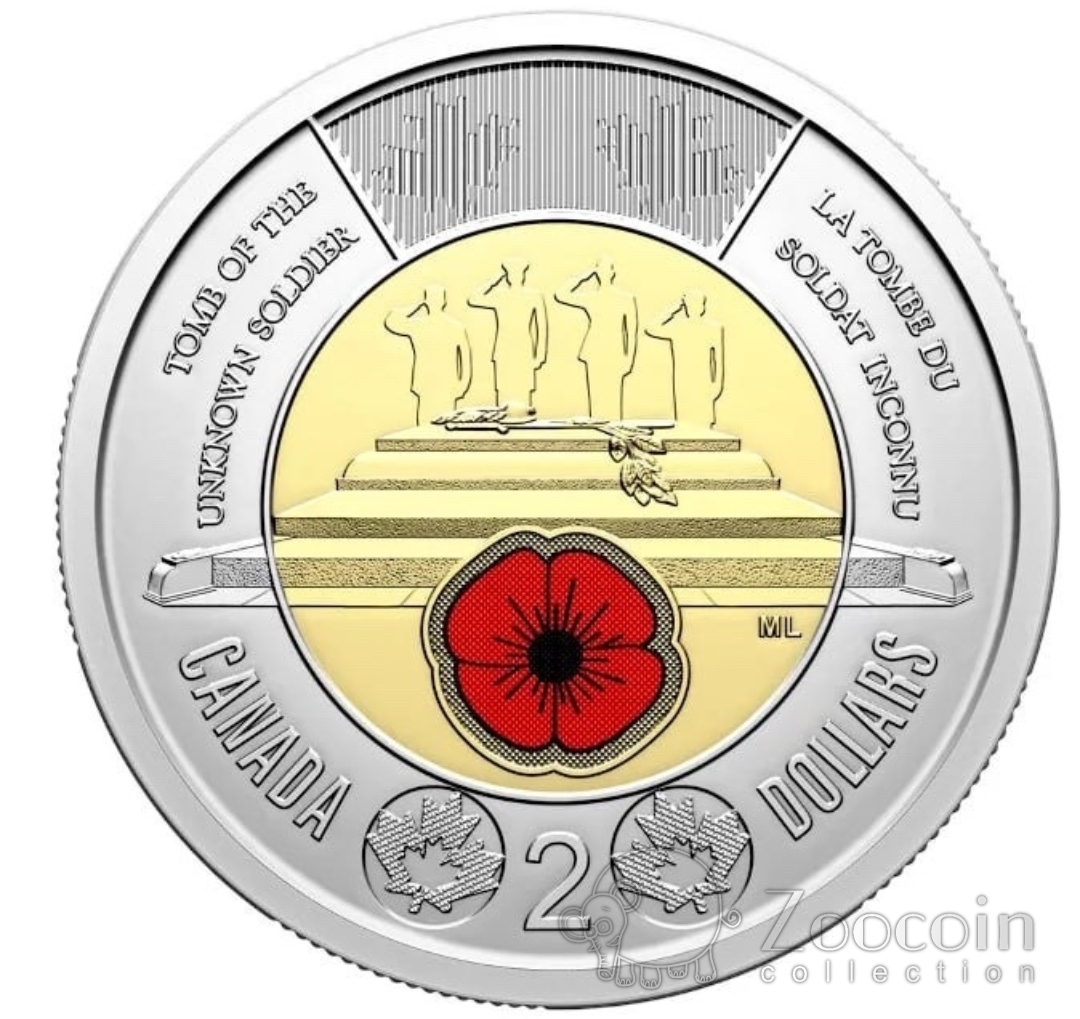 Канада 2 доллара 2025 Чествование неизвестного солдата Канады (цветная)