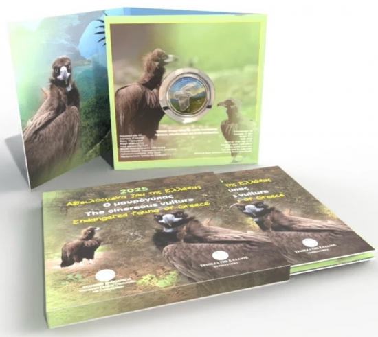 Греция 5 евро 2025 Исчезающая фауна Греции - стервятник-монах