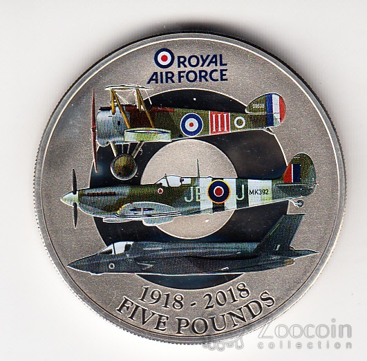 Джерси 5 фунтов 2018 100 лет Королевским ВВС Джерси 5 фунтов 2018 100 лет Королевским ВВС