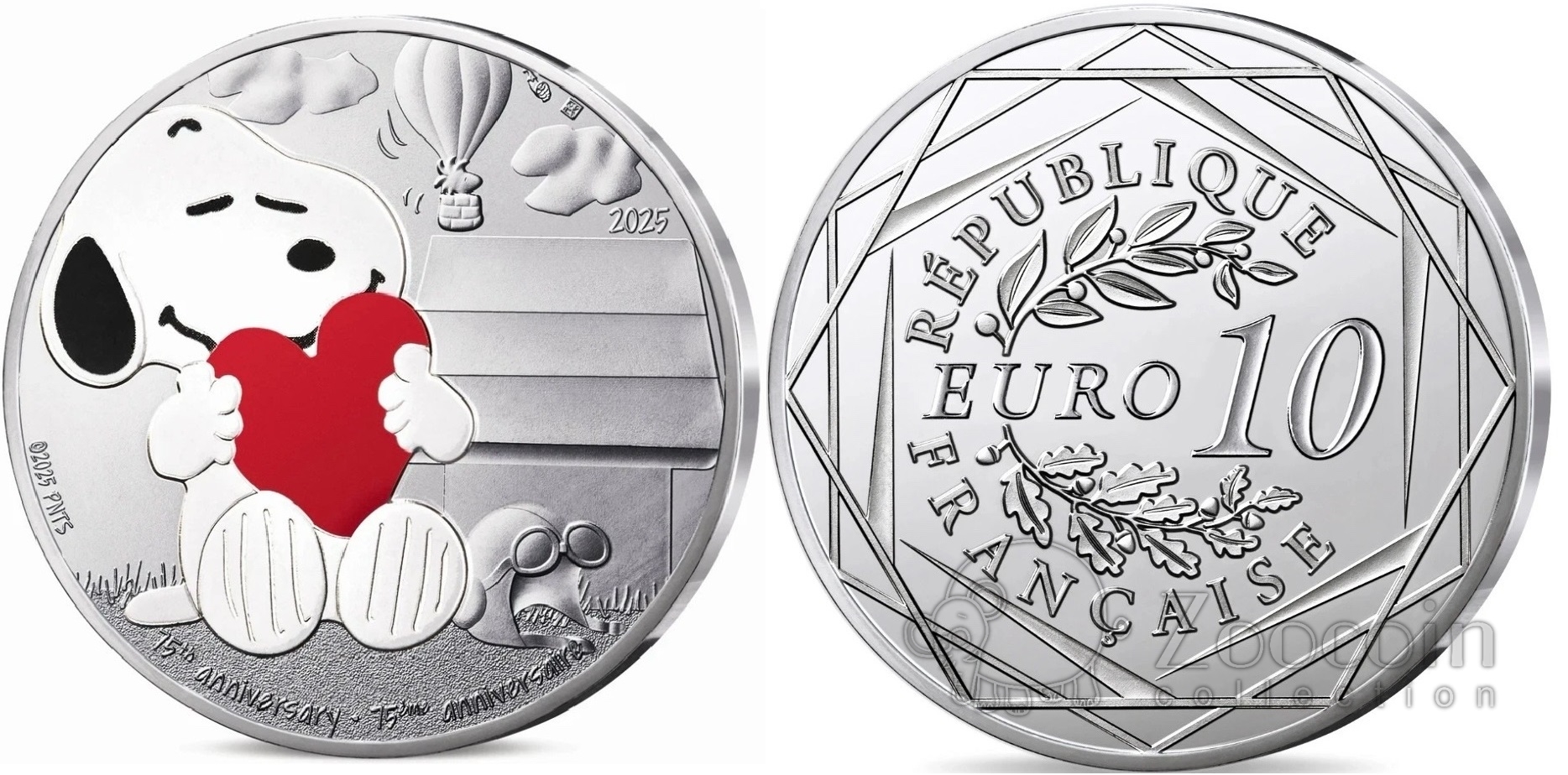 Франция 10 евро 2025 75 годовщина комикса Арахис (Мелочь пузатая) / Peanuts - Снупи (блистер)