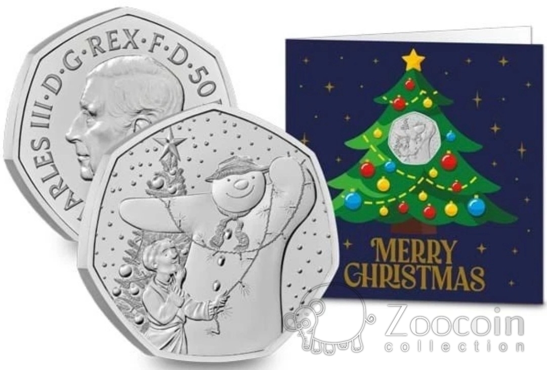 Великобритания 50 пенсов 2025 Рождество - Снеговик (блистер)