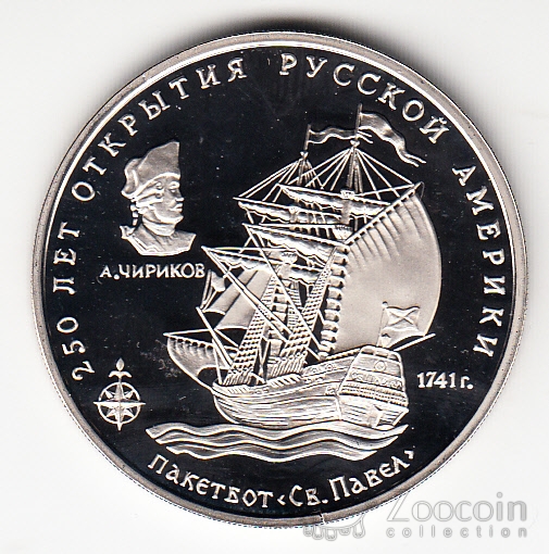 Россия жетон ММД 250-лет Открытия Русской Америки - А. Чириков Россия жетон ММД 250-лет Открытия Русской Америки - А. Чириков