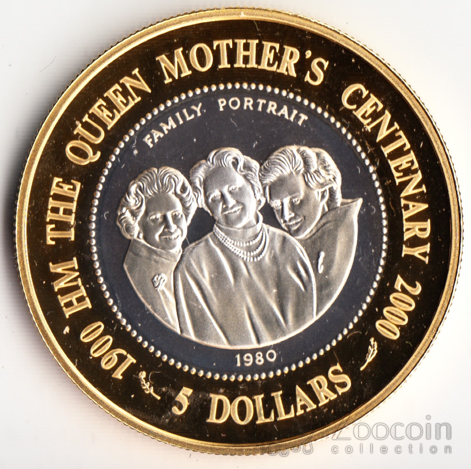 Острова Кука 5 долларов 2000 100-летие Королевы-Матери